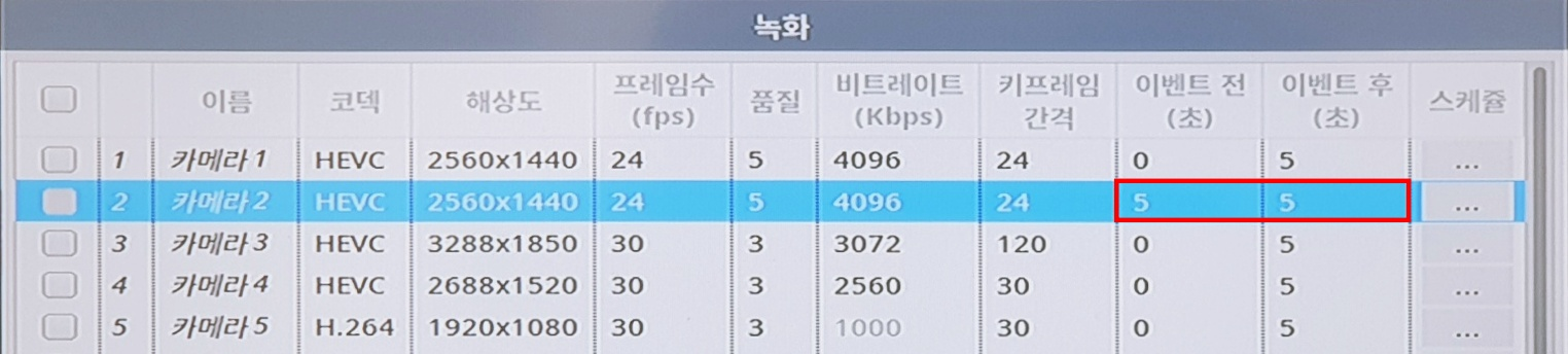 이벤트 전/후 시간을 늘려가면서 테스트 하여 카메라 설치 위치에 맞는 시간을 설정합니다.