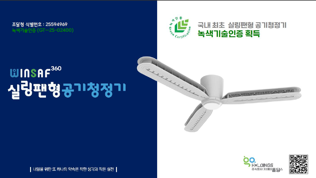 국내 최초 실링팬형 공기청정기 제조기업 지에이홀딩스 소개 자료