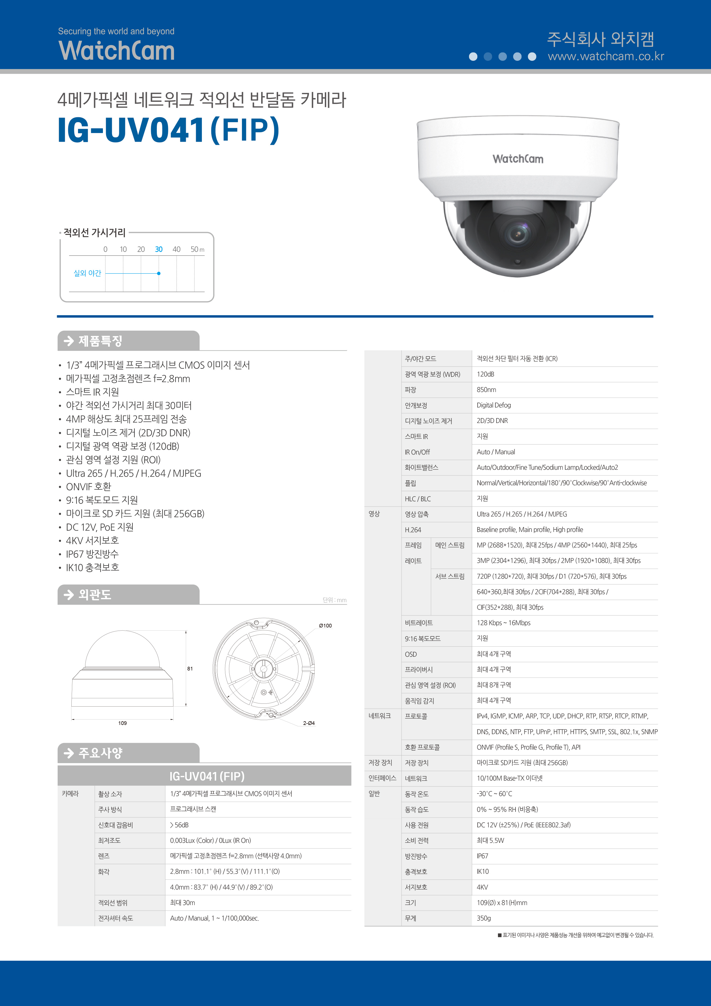 | 호환 프로토콜 | ONVIF(프로필 S, 프로필 G, 프로필 T), API | |